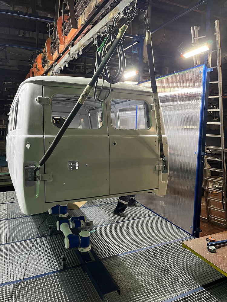 Нашей компанией были спроектированы, изготовлены и смонтированы камера для нанесения ПШМ и платформа для установки коллаборативных роботов из углеродистой стали. Кроме того, нашими специалистами разработана и реализована система на основе искусственного интеллекта для определения типа кузова и дальнейшего обмена данными с коллаборативными роботами.