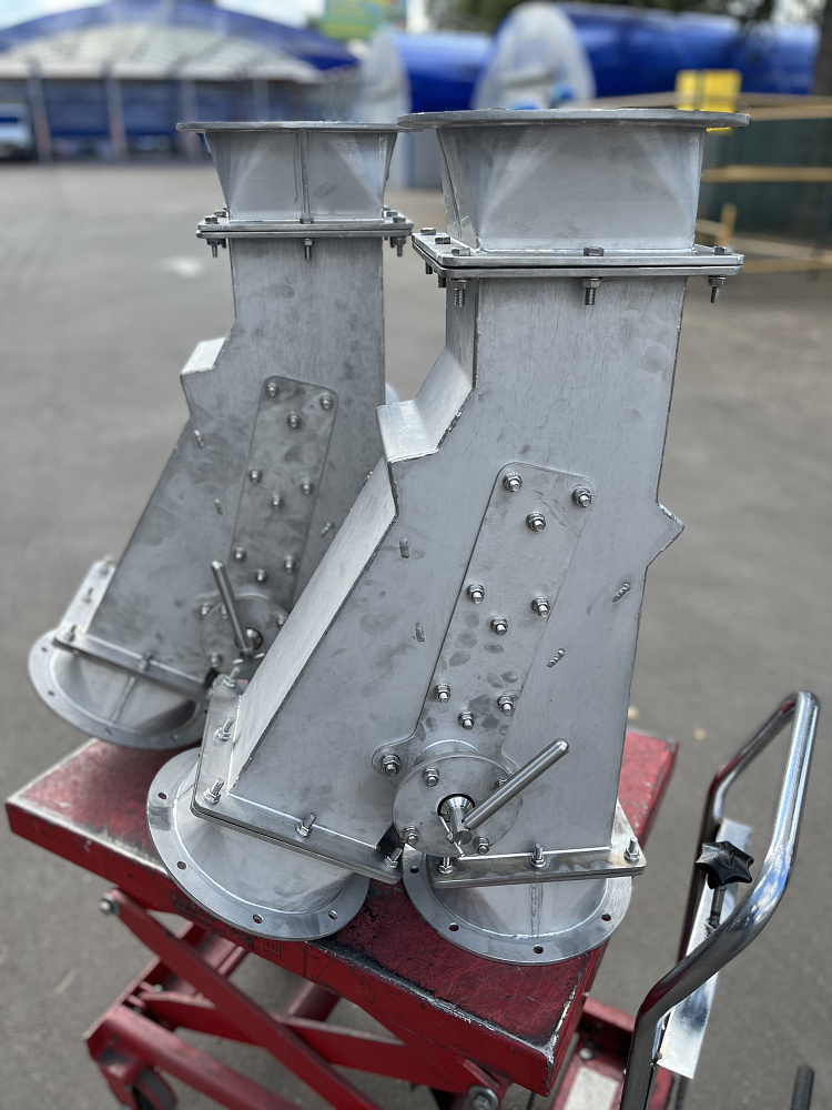 2025 г.: Проектирование и изготовление 2х перекидных клапанов из нержавеющей стали AISI304 для сыпучих материалов под электропривод с ручным дублером.