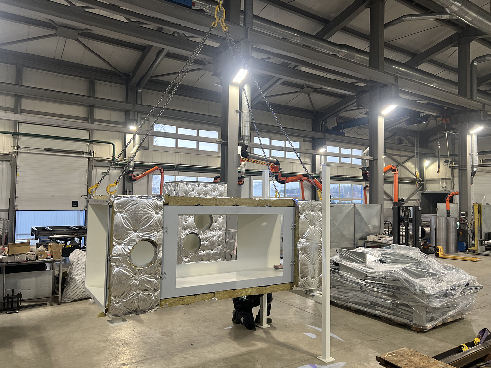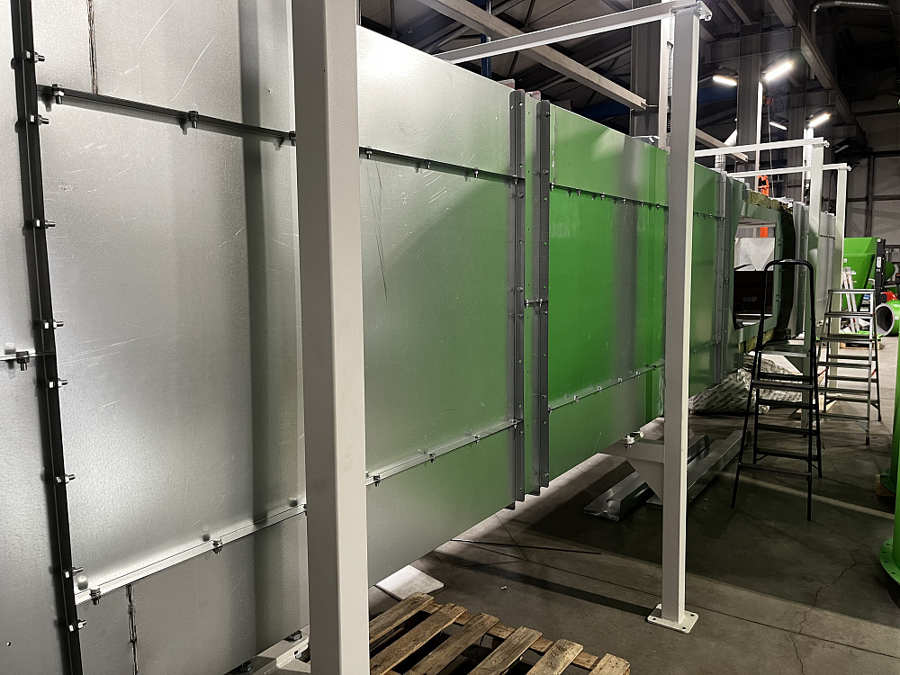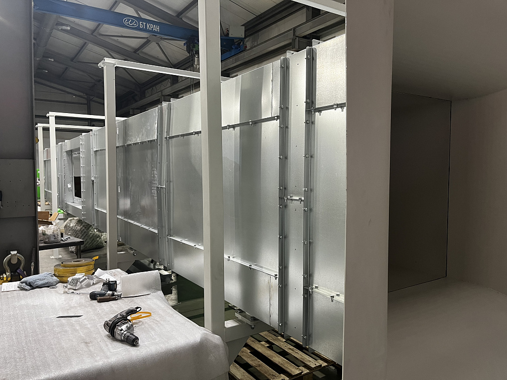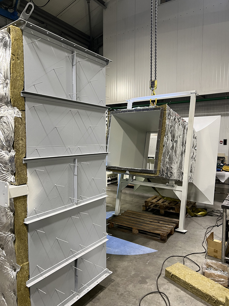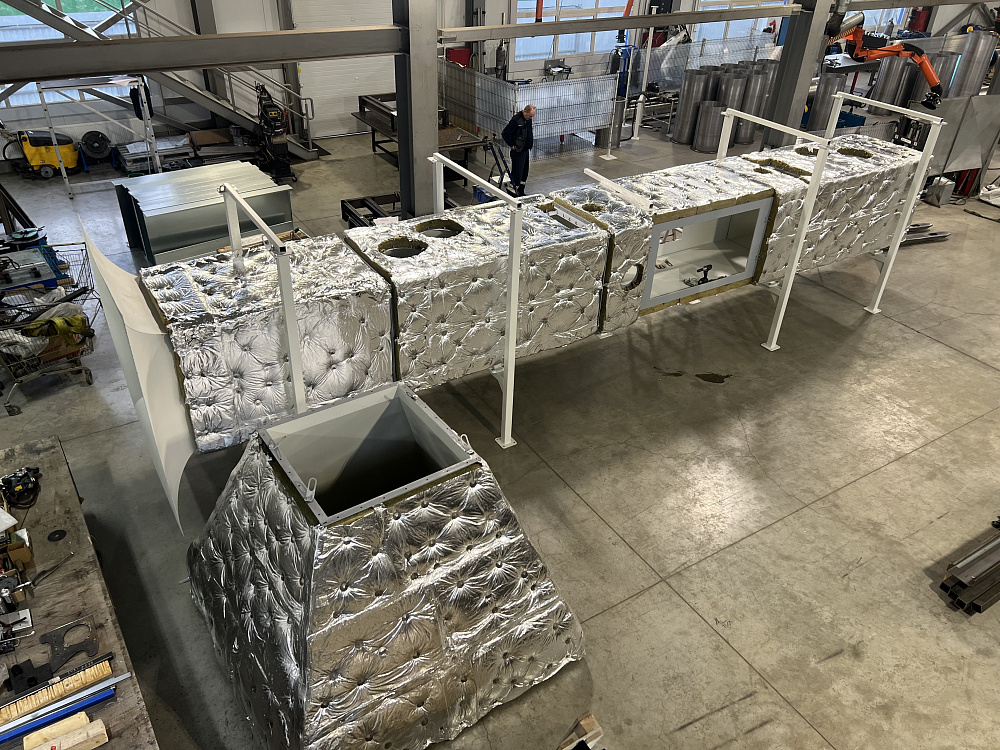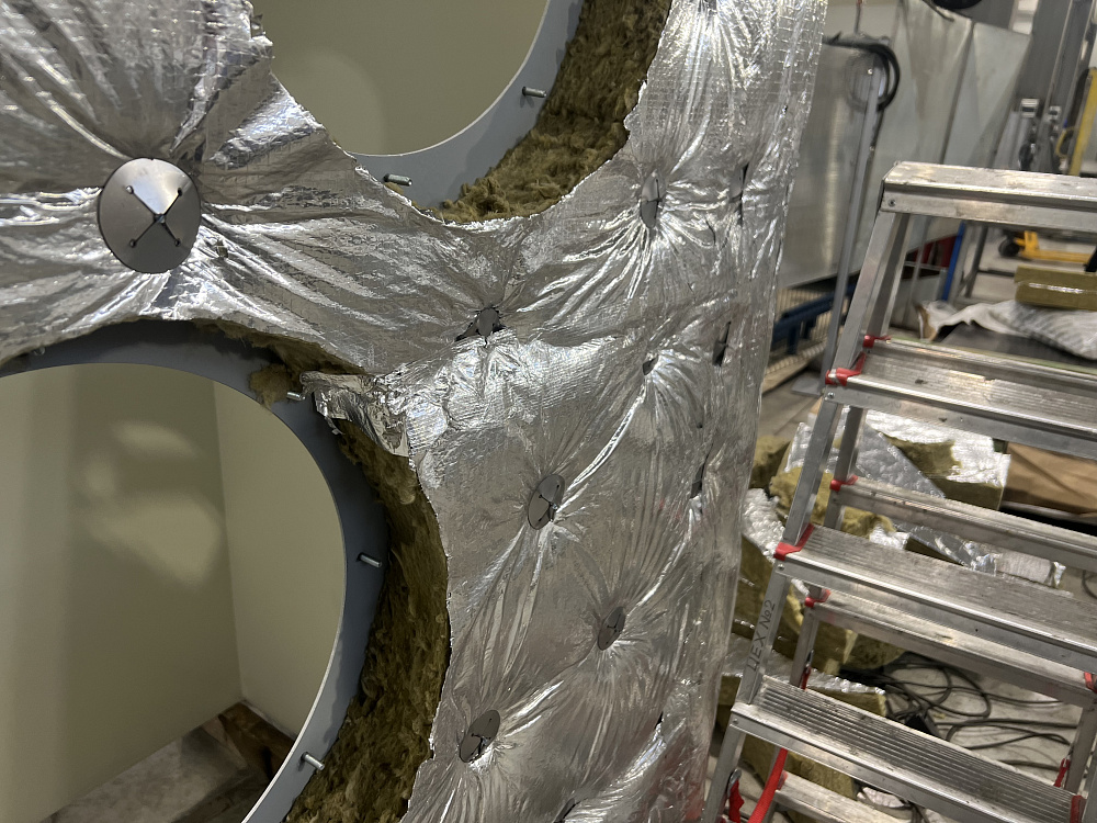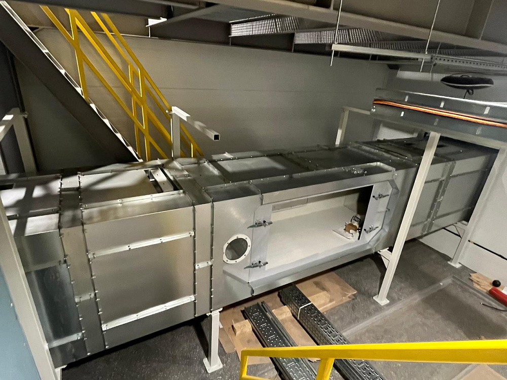 Нашей компанией изготовлен и смонтирован воздуховод с изоляцией и панельной окожушкой для аэродинамических испытаний изделий.